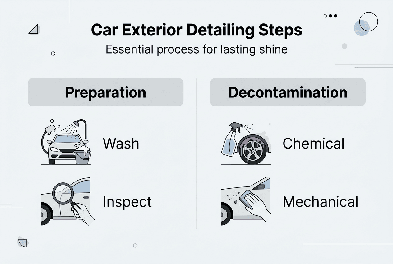 Essential exterior detailing practices include regular decontamination as a core maintenance step. This process extends the life of protective coatings, maintains paint clarity, and prevents permanent damage from embedded contaminants. Treating it as routine care rather than occasional deep cleaning delivers superior long term results.