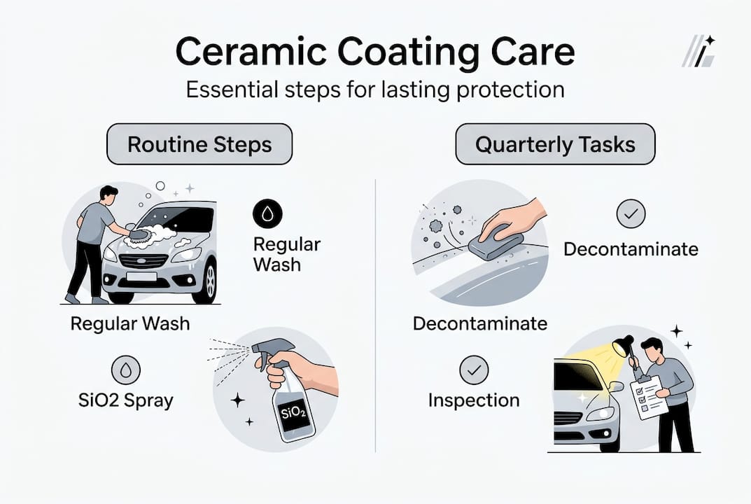 Following a systematic approach to ceramic coating maintenance ensures you never miss critical steps and your coating performs optimally. This routine builds on the tools and schedule covered earlier, providing the exact process for each maintenance task.