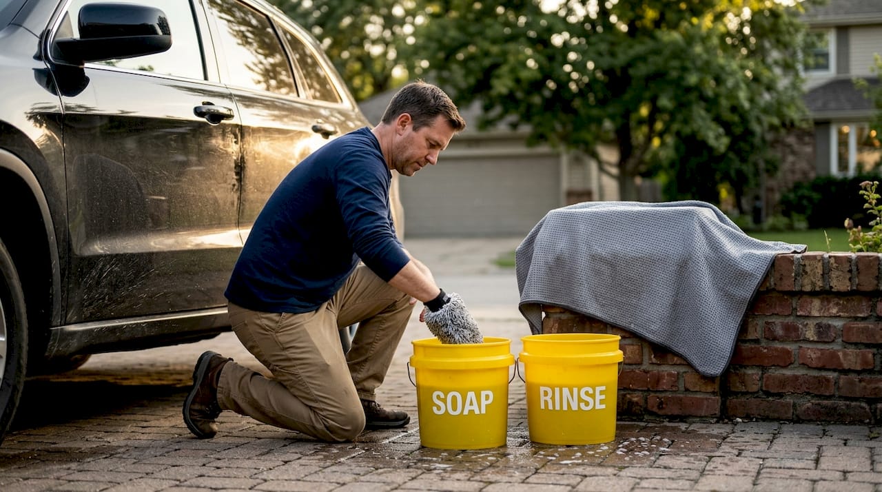 | pH-neutral wash | Every 1-2 weeks | Two buckets, grit guards, microfiber mitts, pH-neutral shampoo | 30-45 minutes |